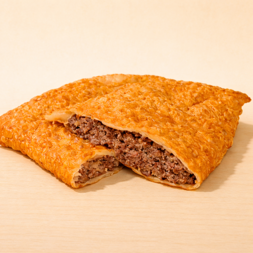 Смесь говядины и свинины с луком — сочная мясная начинка по проверенной классике в хрустком чебуреке.