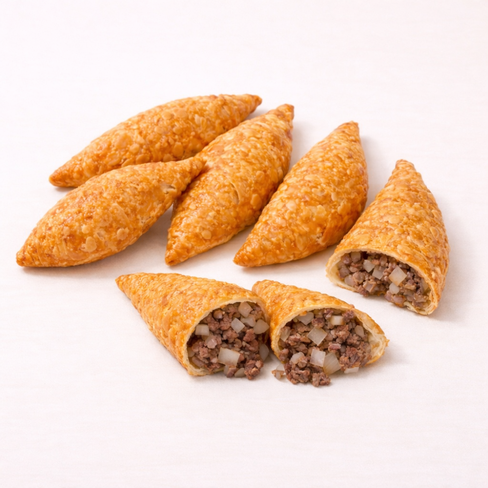 Треугольные гылуны ручной лепки с начинкой из сочной говядины и репчатого лука — насыщенный мясной вкус без лишних акцентов.